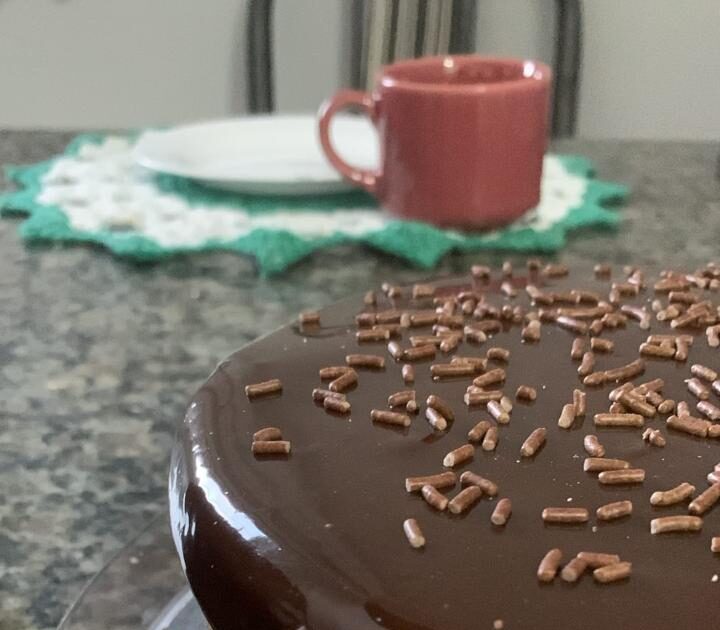 O bolo de cenoura com brigadeiro mais perfeito que eu ja comi